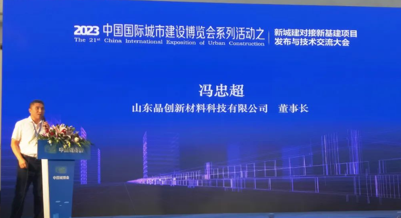 下午13点20分—14点20分,全联城市基础设施商会副会长单位山东晶创新材料科技有限公司董事长冯忠超做了《高端聚丙烯土工合成新材料助力城市建设高质量发展》的主题报告。